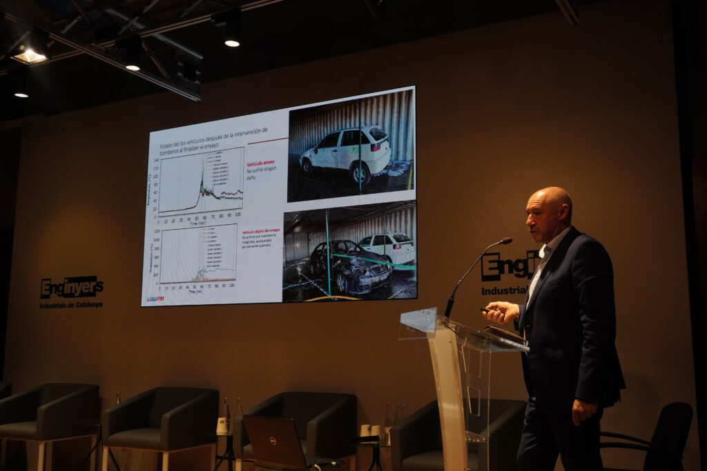 Bajo el lema “Nuevos desafíos en la protección contra incendios: garajes, baterías y movilidad eléctrica”, la jornada abordó los riesgos emergentes vinculados al uso masivo de vehículos eléctricos y sus sistemas de carga en espacios cerrados. Se analizaron problemáticas como las fugas térmicas en baterías de ion litio, la carga doméstica sin supervisión, la ventilación deficiente en garajes subterráneos o la sobrecarga de infraestructuras eléctricas por recarga simultánea.